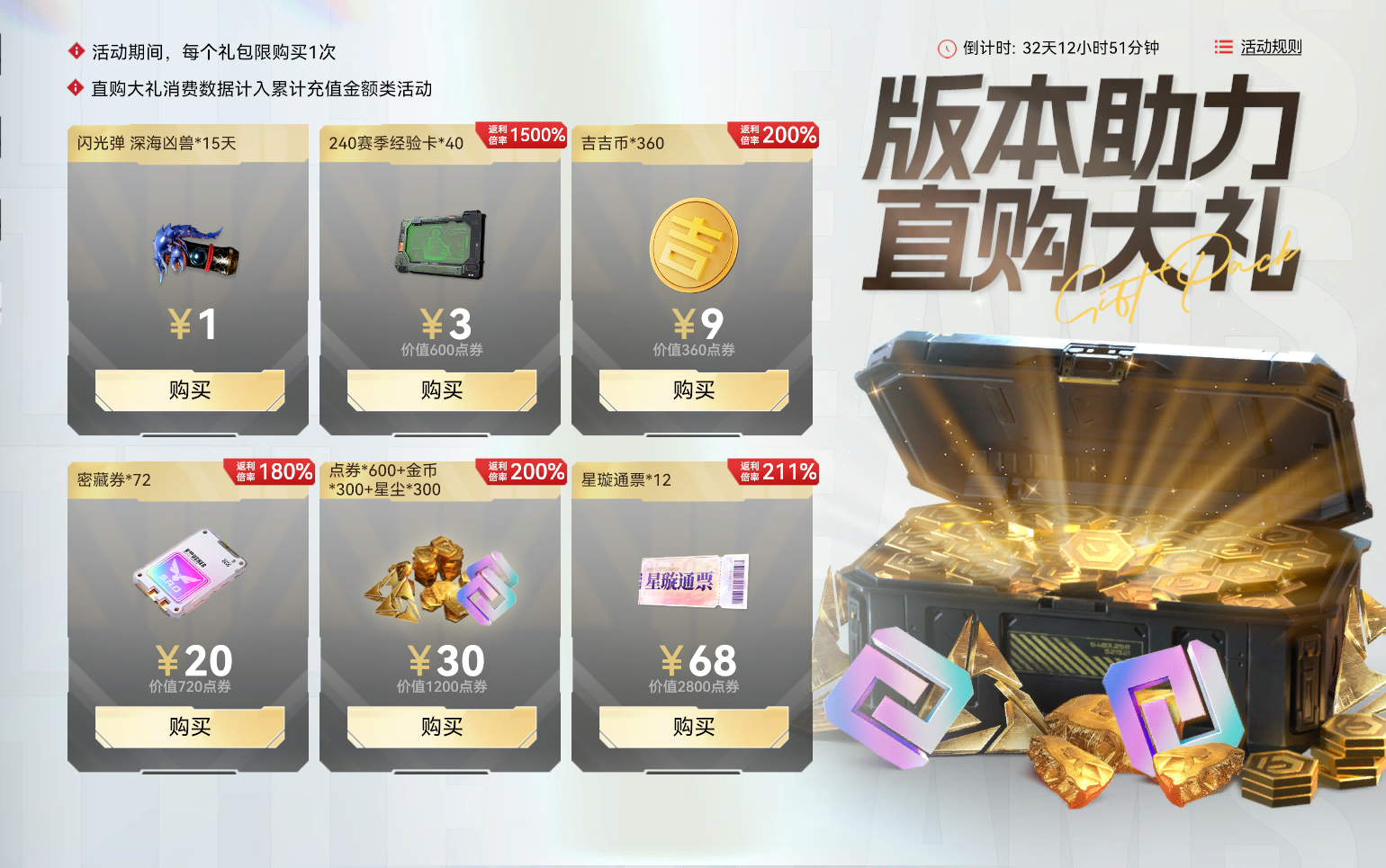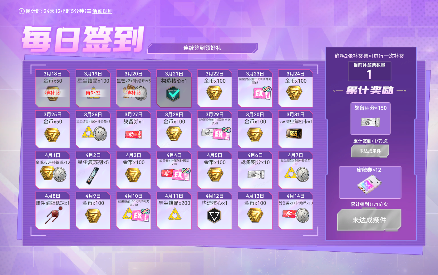 维护完成后将向全服狙友发放金币×300,星尘结晶×300,银币×3000,无序结晶×3000;若维护时间意外延长,每延迟1小时额外增加100金币,100星尘结晶补偿福利(邮件有效期为7天,请及时领取邮件)。